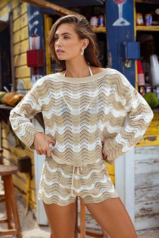 El top de rayas Castaway Cutie es perfecto para ir de la playa al paseo marítimo. Su cuello redondo y mangas largas lo mantienen cómodo, mientras que su corte holgado lo hace fácil de poner.