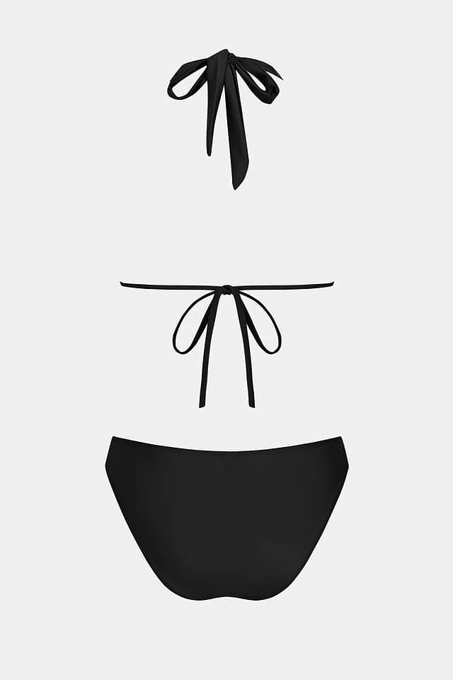 ¡Lleva la energía isleña con el conjunto de bikini Paradise Palms! El escote pronunciado con tirantes halter ofrece una ligera sujeción del busto, mientras que el tiro bajo y el corte alto de la pierna crean un look divertido.
