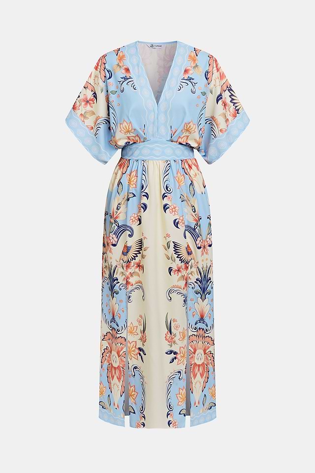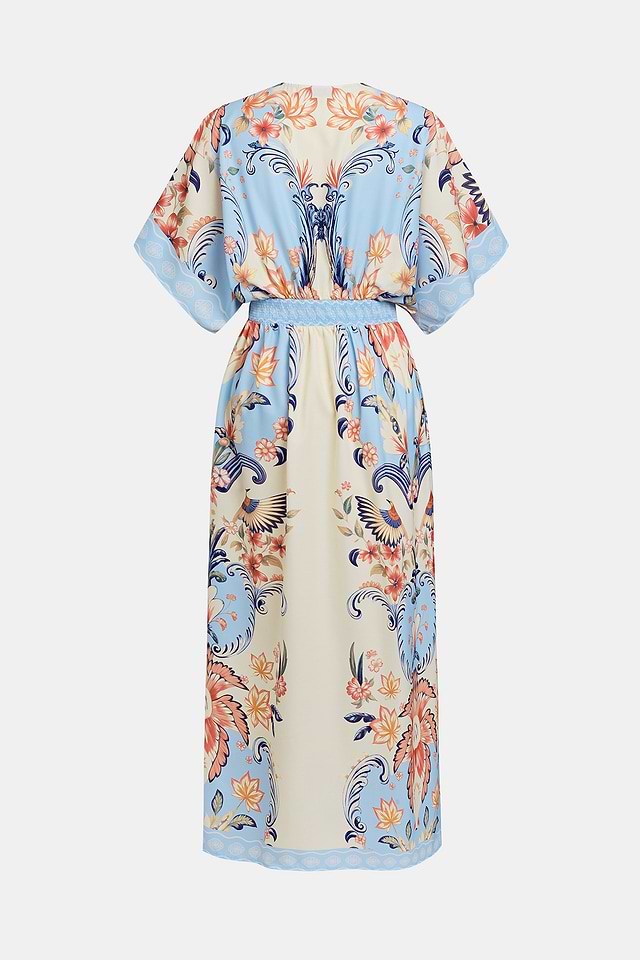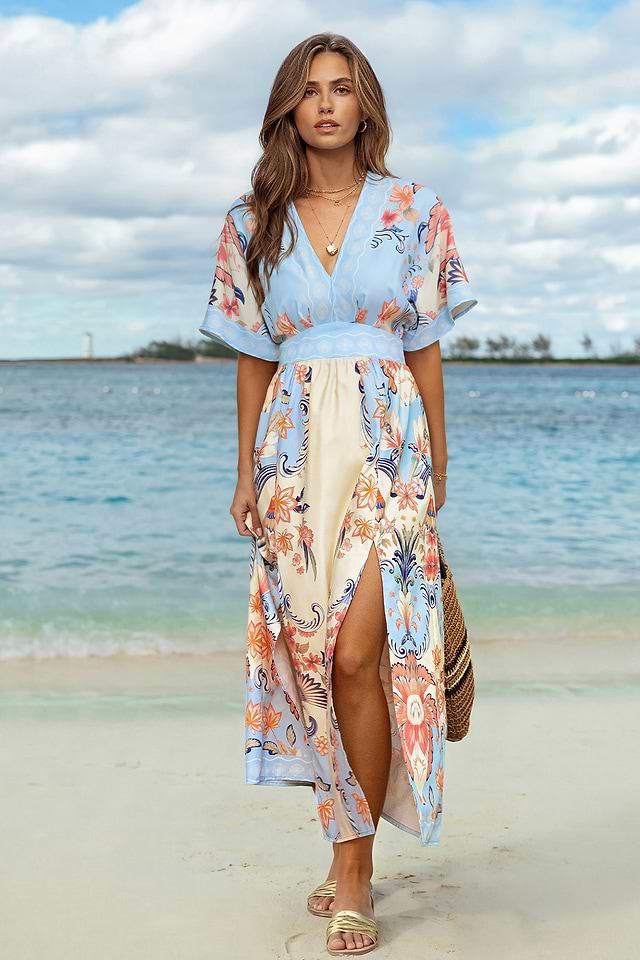 El vestido maxi floral "Acuarela Morning" captura la suave sensación de sol de un nuevo día. Sus mangas cortas y escote pronunciado lo mantienen ligero, mientras que su largo maxi fluye con gracia a cada paso.