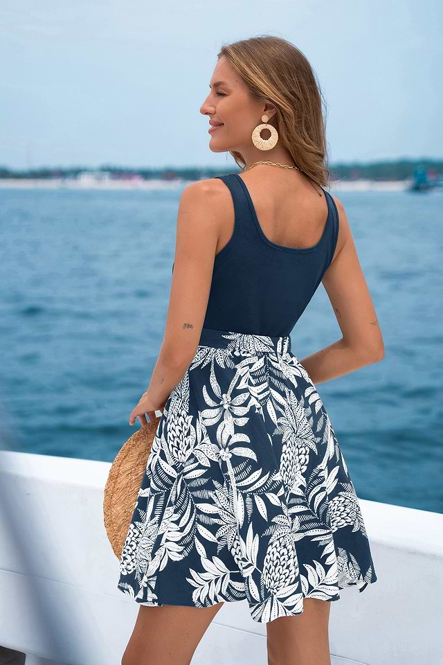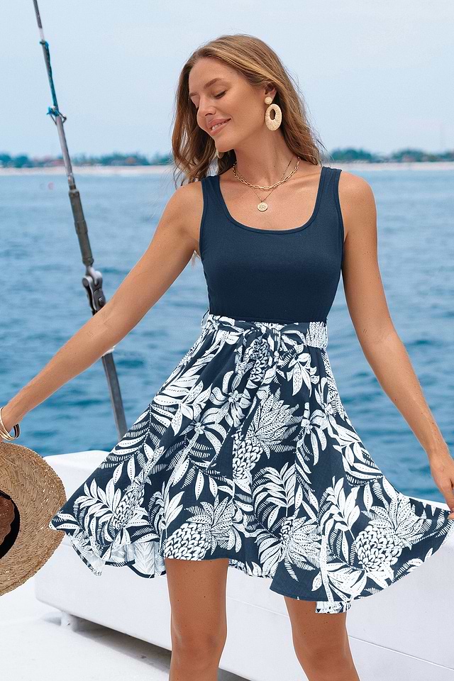 El minivestido tropical Beach Plaza te llena de energía solar dondequiera que vayas. Su escote cuadrado y corte sin mangas se combinan con un lazo en la cintura y un largo mini para un ajuste favorecedor y cómodo, ideal para los días cálidos.