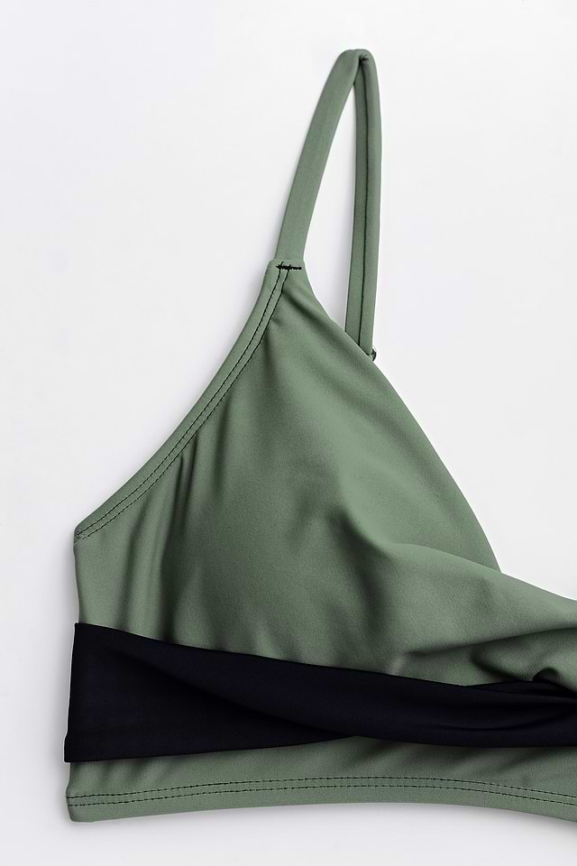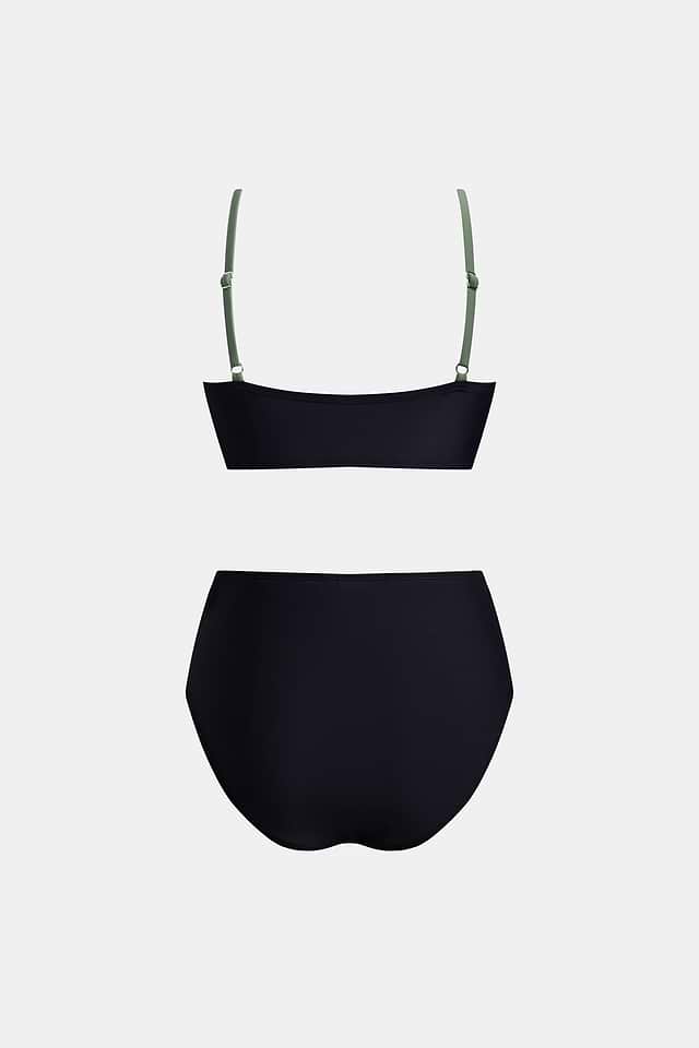 Conjunto de top de bikini cruzado en negro y eucalipto y braguitas de talle alto