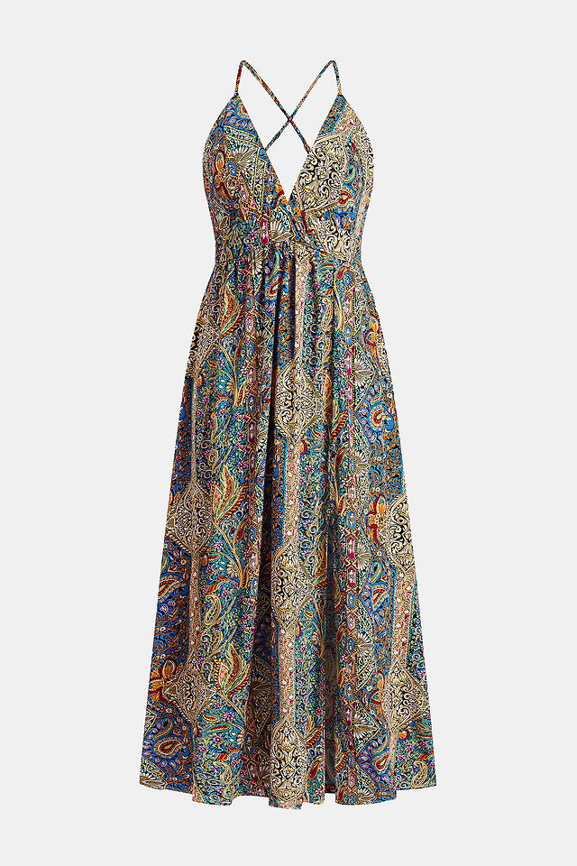 Vestido largo bohemio con escote pronunciado y estampado paisley