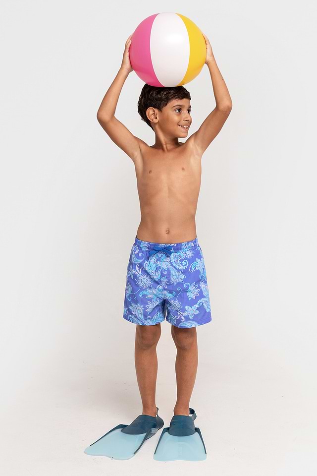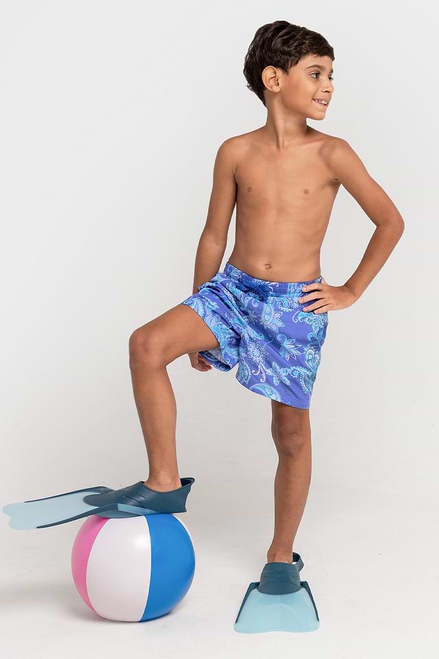 Bañador corto tipo tabla con cordón y estampado de cachemira para niños