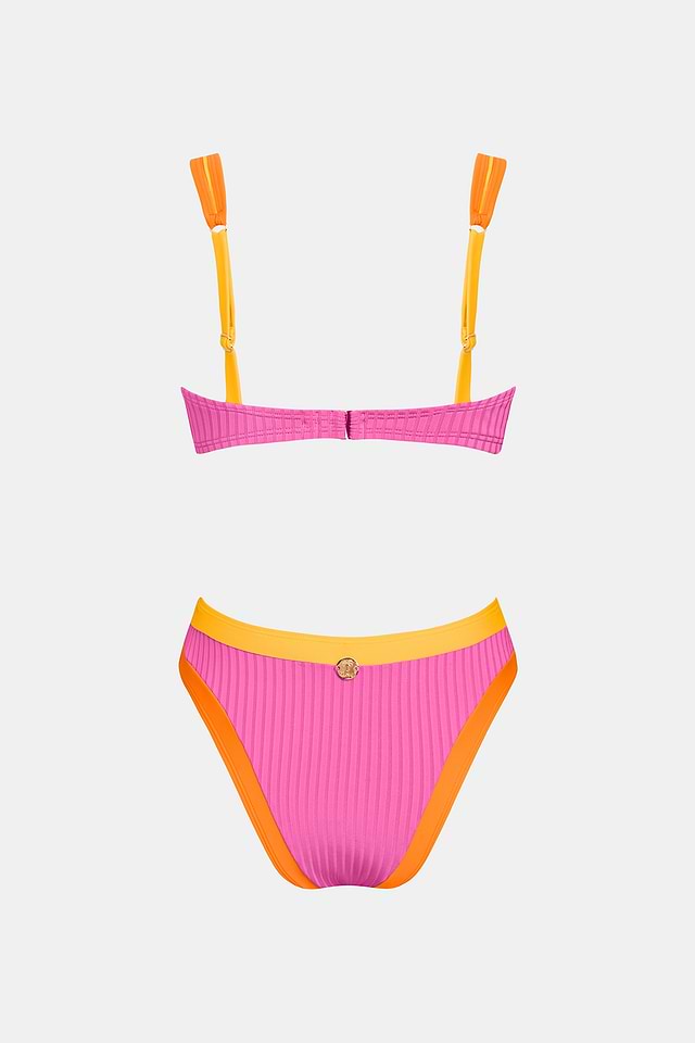 El conjunto de bikini Burnin' Bright fue diseñado para escapadas soleadas y momentos inolvidables. Su escote de diamante se combina con un busto alto y aros para un corte esculpido y seguro. El corte extra alto de la pierna le da un ajuste moderno durante las tardes doradas y las cálidas noches costeras.
