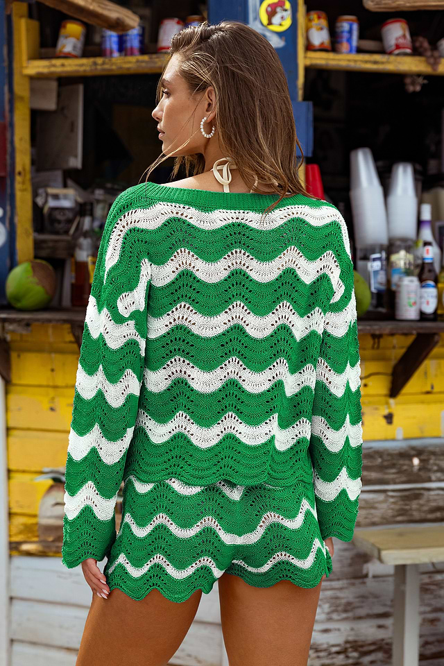 El top de rayas Castaway Cutie es perfecto para ir de la playa al paseo marítimo. Su cuello redondo y mangas largas lo mantienen cómodo, mientras que su corte holgado lo hace fácil de poner.