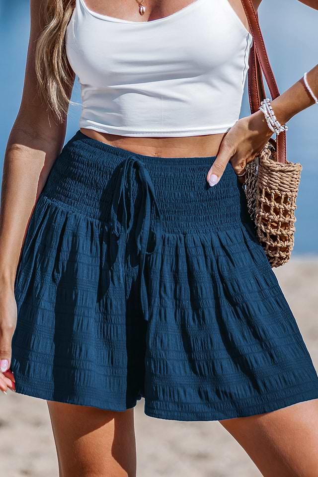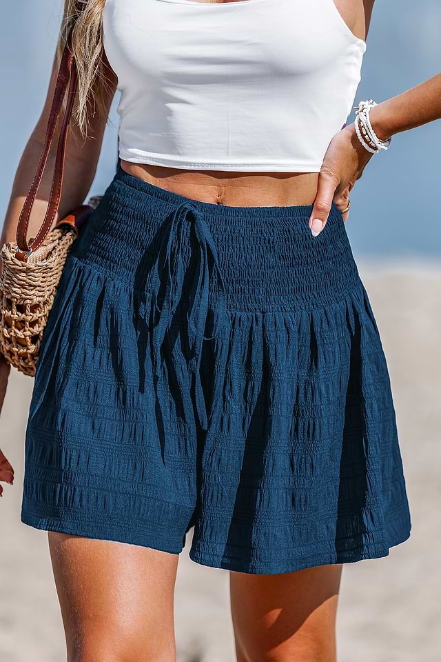 Los shorts Coastline Flutter Blue están diseñados para moverse con la brisa. Con una cómoda cintura fruncida y perneras anchas, estos shorts aportan fluidez y estilo a cualquier look playero.