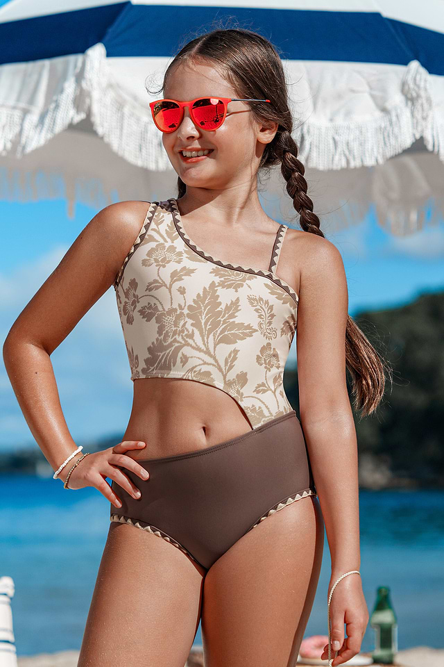 Traje de baño de una pieza con estampado floral Coral Bud