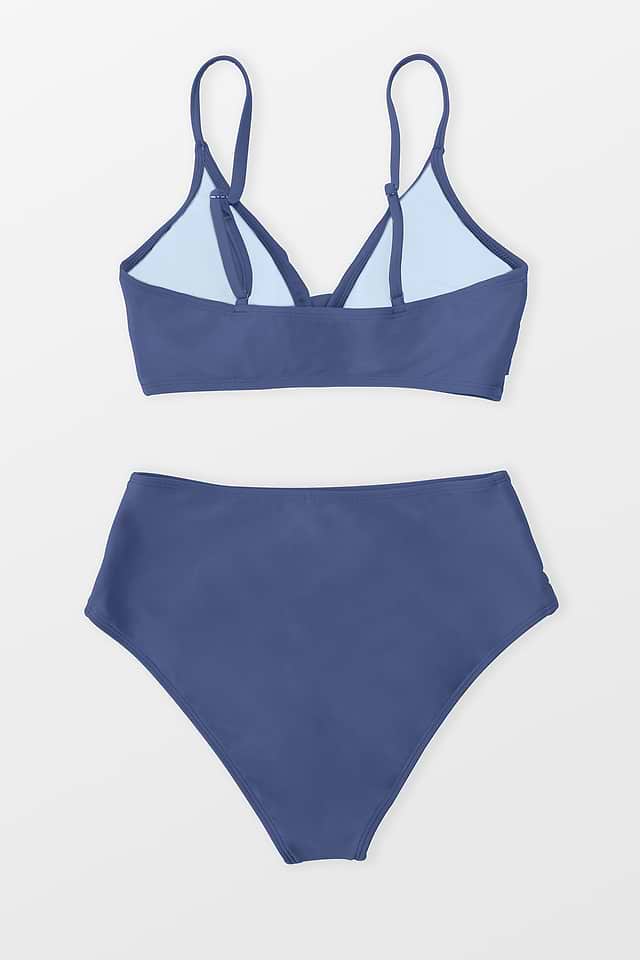 Conjunto de bikini de cintura alta empalmado con sujetador torcido con cuello en V