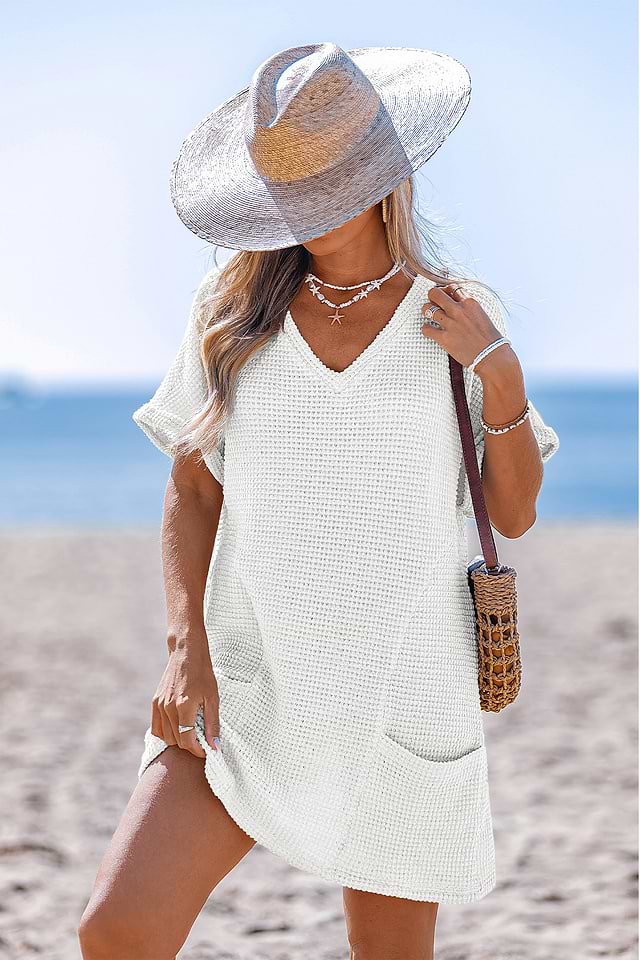 El minivestido blanco Dreamy Tides es ligero y relajado, ¡ideal para cualquier ocasión! Su escote en V y mangas cortas se combinan con un largo mini con prácticos bolsillos para un ajuste cómodo y fácil que querrás usar una y otra vez.