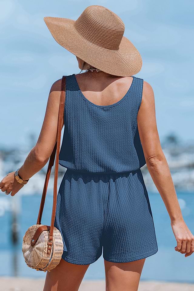 El mono azul Easy Win te trae el encanto relajado que necesitas para un día informal. Su escote redondo, sin mangas y perneras anchas lo convierten en la prenda ideal para estar guapa y cómoda.