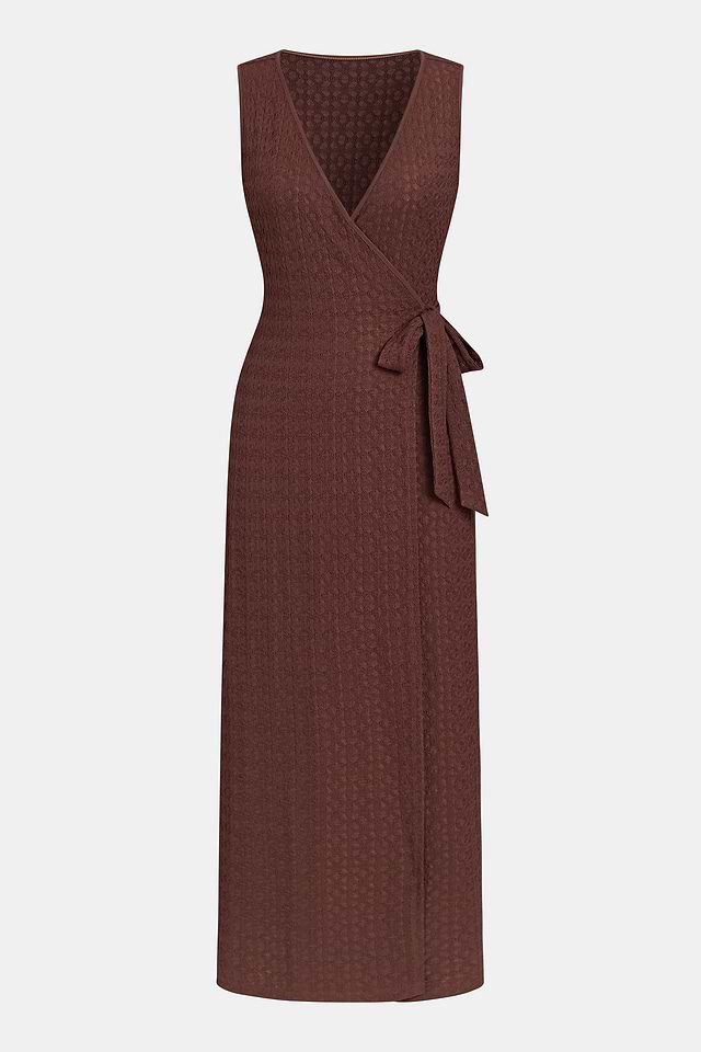 El vestido largo Feels Like Summer Cover-Up captura el ambiente relajado y despreocupado de un día junto al agua. Su escote cruzado y diseño sin mangas crean una silueta relajada, mientras que el detalle de lazo lateral define sutilmente la silueta fluida del vestido largo para un look suave y soleado.
