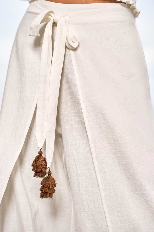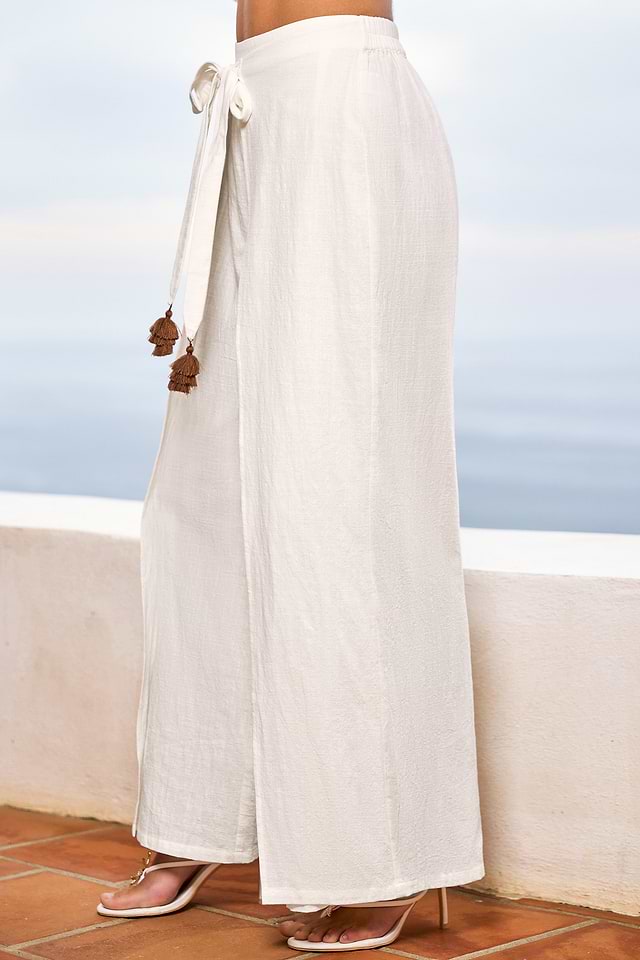 ¡Los pantalones blancos The Good Story son chic y coquetos sin esfuerzo! El lazo en la cintura y el corte recto crean un ajuste favorecedor y fácil de usar, ideal tanto para días informales como para noches más elegantes.