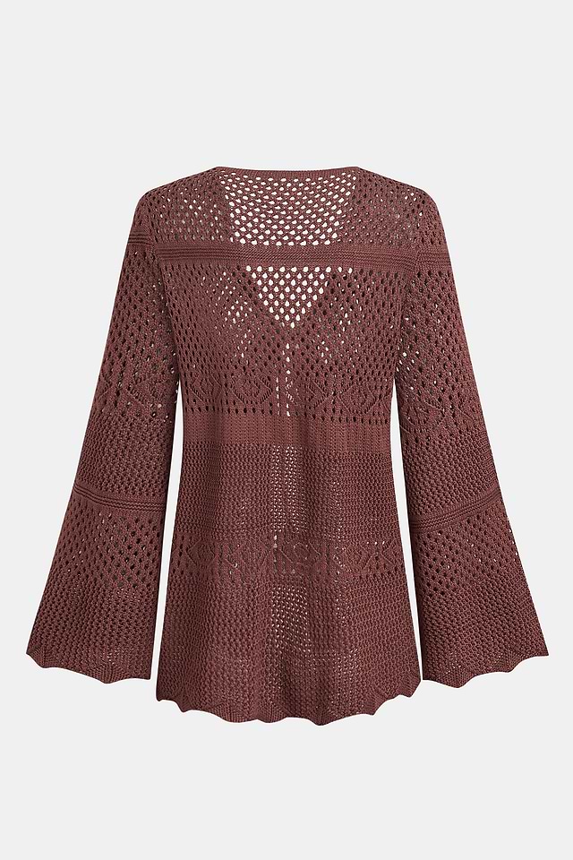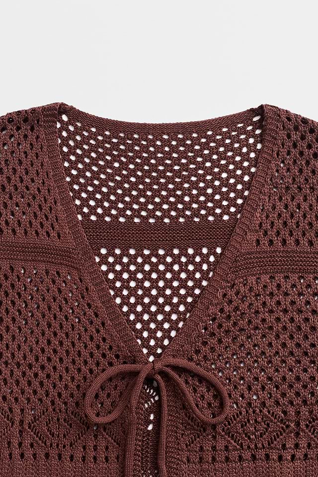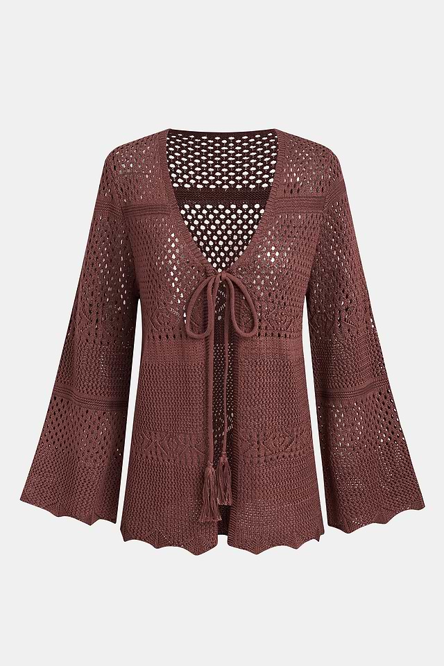 El kimono High Spirits Cover-Up añade una capa ligera a los días soleados y las noches cálidas. Su escote en V y mangas largas enmarcan el look, mientras que el detalle de lazo delantero y el acabado de punto abierto crean una silueta ligera y fluida que se adapta con facilidad al movimiento.