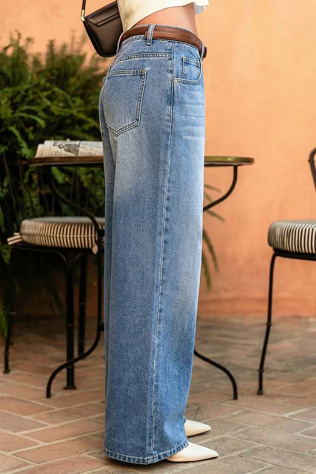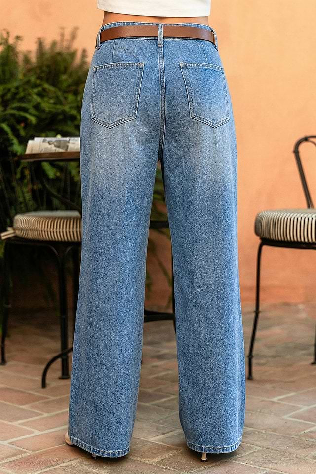 Los jeans azules In the Studio son perfectos para días informales con un toque creativo. Sus bolsillos con trabillas y su corte recto los hacen versátiles, cómodos y fáciles de combinar.