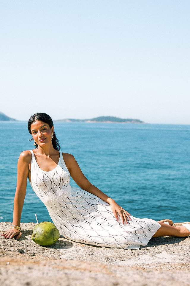 El vestido midi blanco Just Wandering te da un aire relajado y perfecto para cualquier ocasión. Su escote redondo y corte sin mangas se combinan para crear un largo midi fácil de poner, perfecto para días de playa que se convierten en planes.