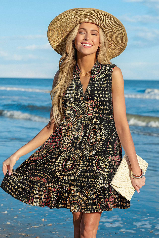 El minivestido Majestic Abstract Cover-Up es tu prenda ideal para un estilo informal de la piscina a la calle. Su escote con muescas, corte sin mangas y largo mini lo hacen fresco, coqueto y listo para cualquier ocasión.