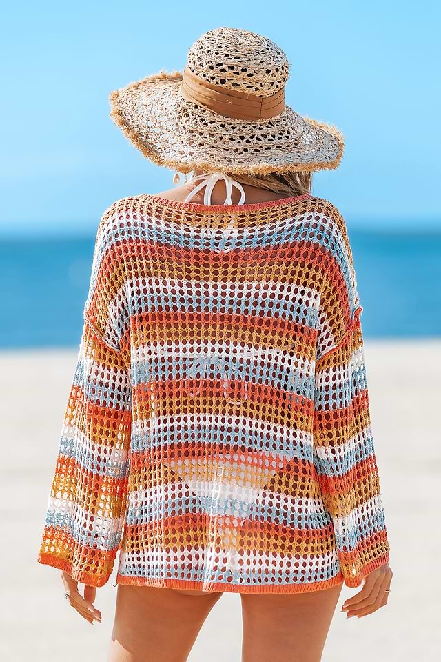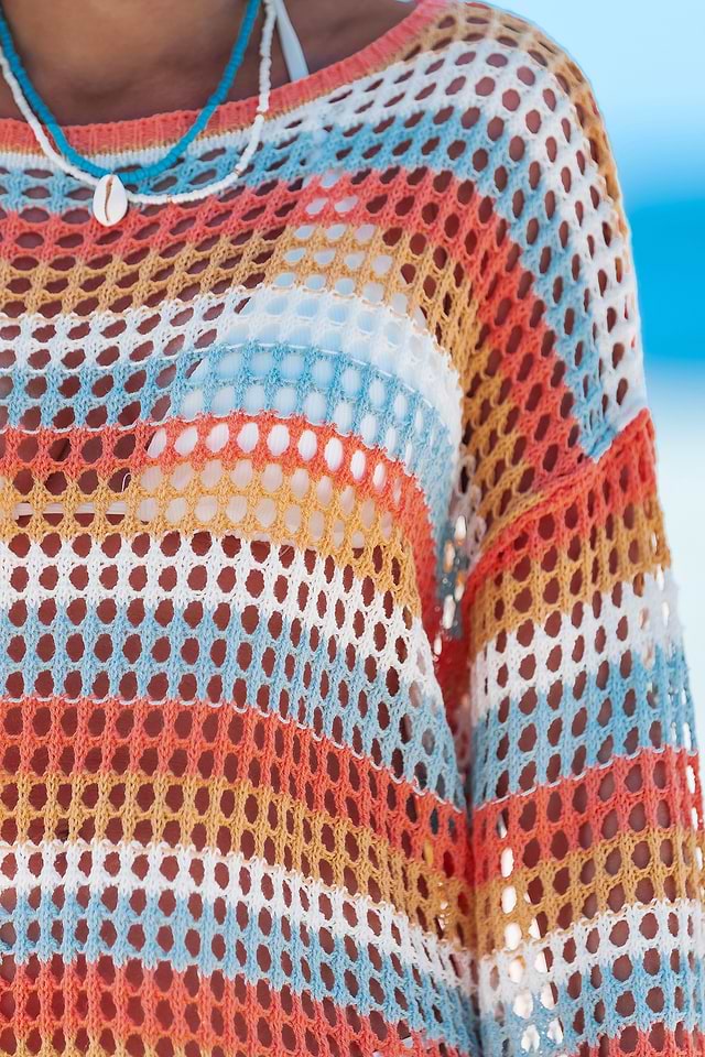 El top Malibu Sunset Ombre le da a tu look la combinación perfecta de estilo y sol. Con cuello redondo, mangas largas y tejido de punto transparente, es la prenda ideal para la playa o después de un chapuzón en la piscina.