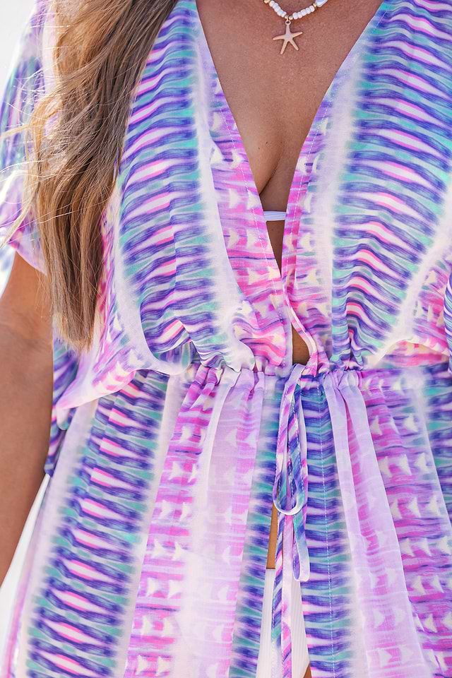 El vestido maxi abstracto Mixed Feelings es una prenda interesante. Presenta un escote pronunciado, mangas cortas y un largo maxi fresco para una capa playera atrevida y sin esfuerzo.
