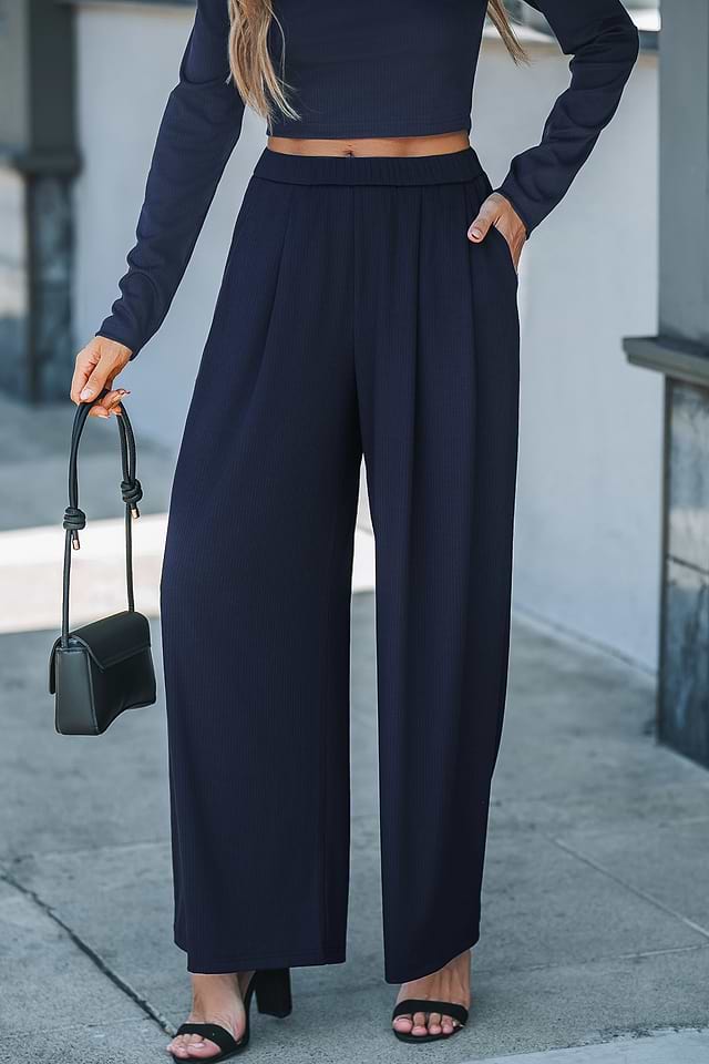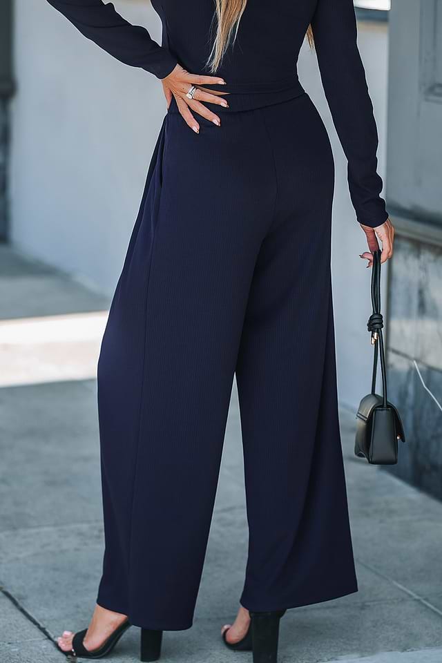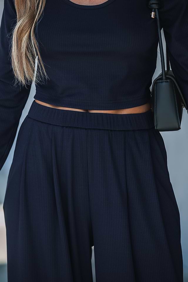 Conjunto de pantalón ancho y camiseta de manga larga azul marino