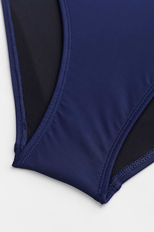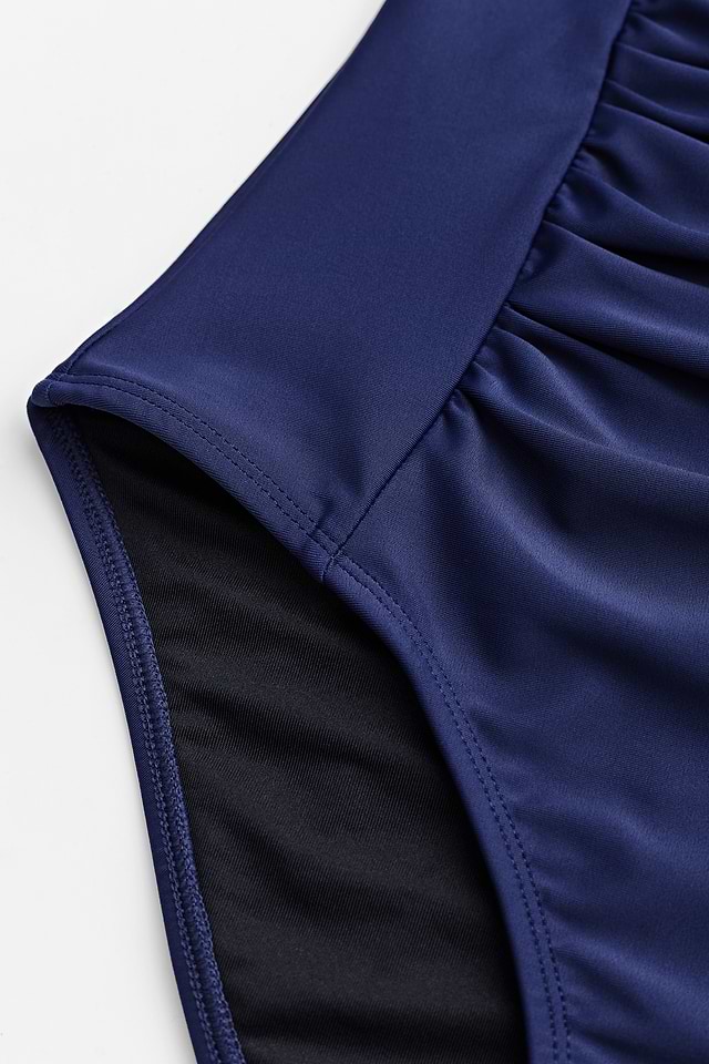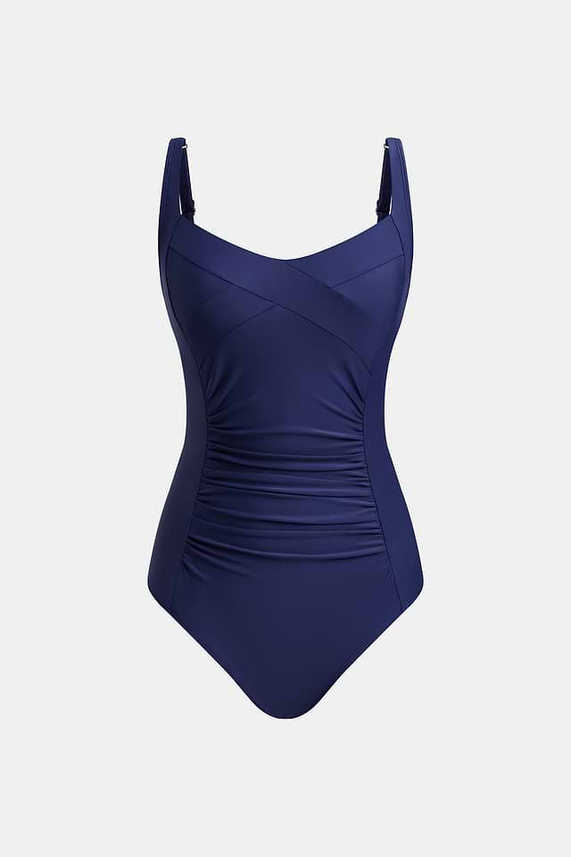 Traje de baño de una pieza con escote en V fruncido y control de abdomen en color azul marino