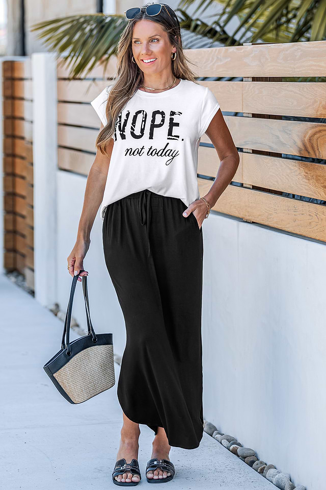 La camiseta gráfica Not Today ofrece un estilo relajado con un toque divertido. Con su clásico cuello redondo y mangas cortas, es una prenda ideal para días informales.