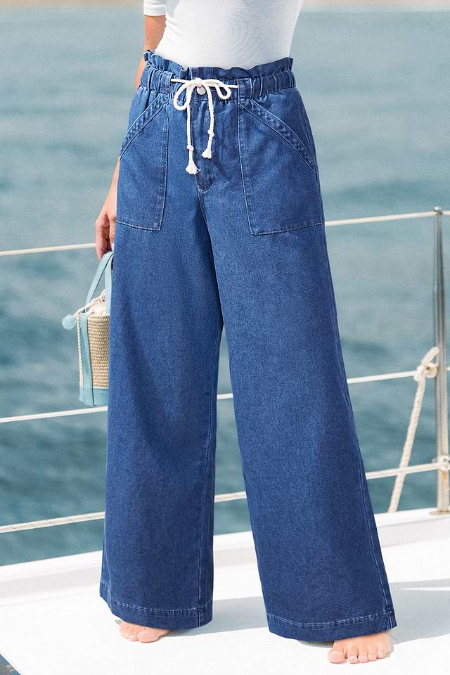Los jeans azules Off the Charts son perfectos para días relajados con un estilo desenfadado. Sus bolsillos con cordón en la cintura y su corte ancho los hacen cómodos, frescos y fáciles de mover.