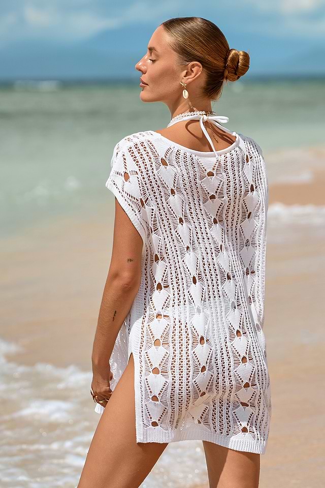 El minivestido blanco One-Way Ticket te hará sentir como si ya hubieras reservado el viaje. Su escote en V y mangas cortas dan paso a un largo mini con dobladillo dividido para un look ligero y cómodo, listo para dondequiera que te lleve el sol.