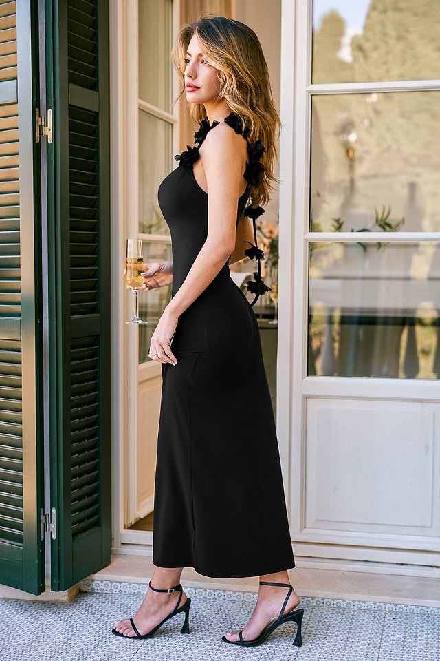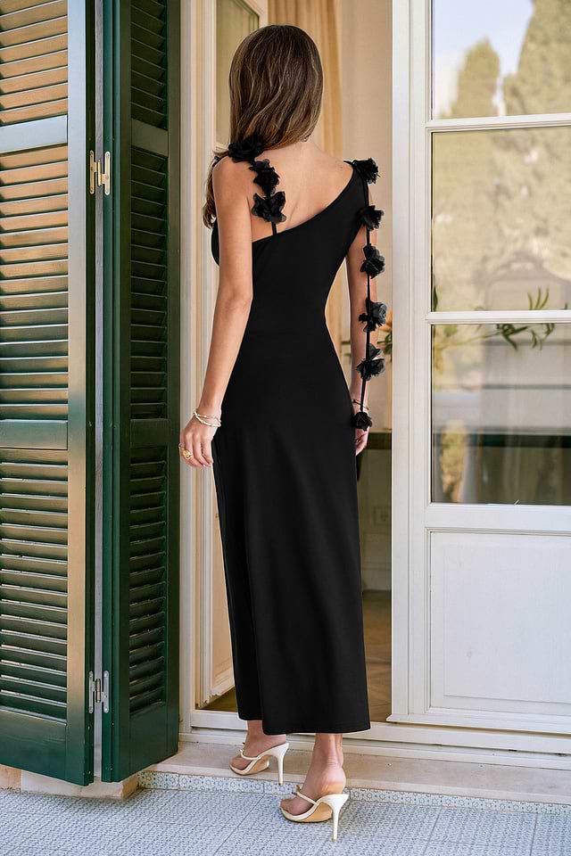 Vestido largo negro Petal Noir
