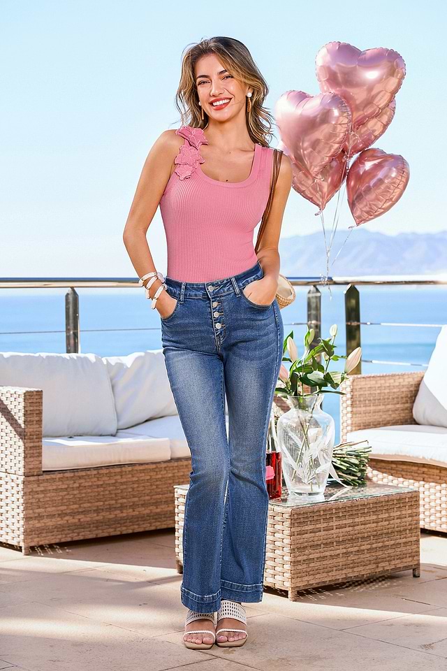 El top rosa Romanticismo es perfecto para mañanas tranquilas y planes fáciles. Su escote redondo y corte sin mangas le dan un toque favorecedor y es ideal para usar en capas o sola.
