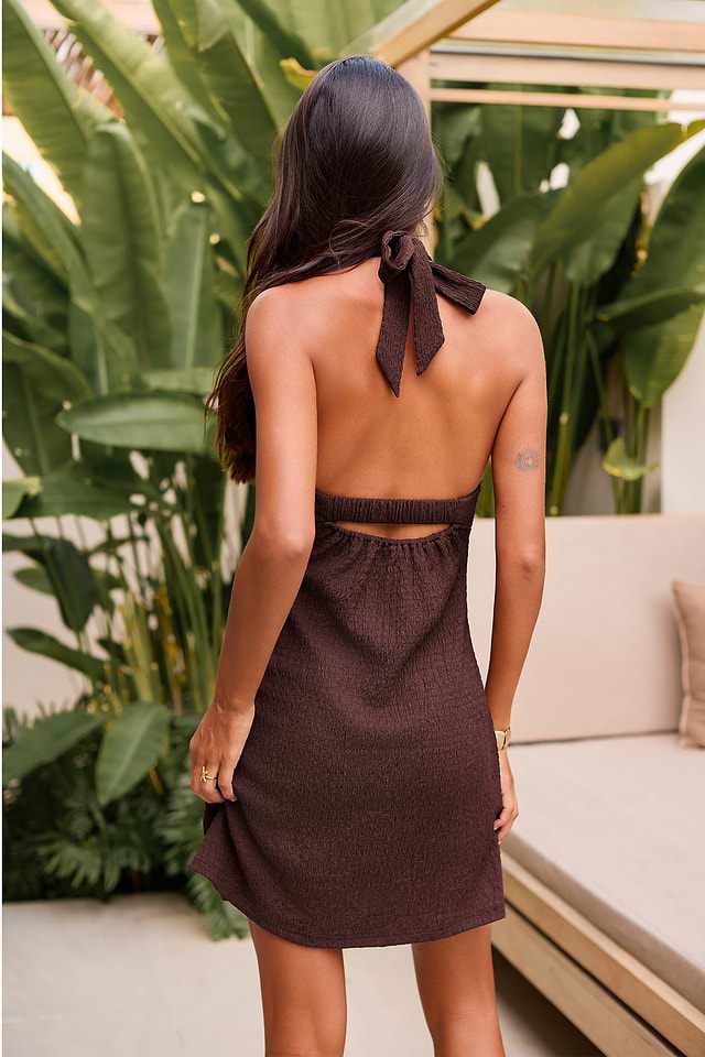 El minivestido marrón Self-Expression te da seguridad y propósito. Su escote alto y corte sin mangas definen la silueta del minivestido para un look audaz, sencillo y seguro.