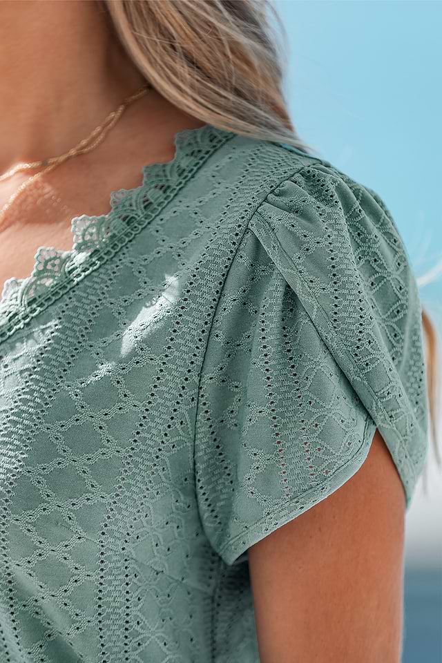 El top verde So Precious es perfecto para un look informal y divertido. Su escote en V y mangas cortas lo hacen ligero y fácil de combinar, ideal para cualquier ocasión.