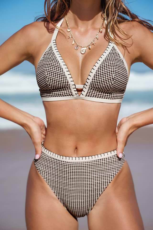 El conjunto de bikini Tiramisú es tan irresistible como su homónimo. Con tirantes halter, copas suaves extraíbles y cierre de gancho en la espalda, este bikini de cintura alta ofrece un favorecedor corte de pierna alto y una moderna cobertura de glúteos para una combinación perfecta de estilo y comodidad.