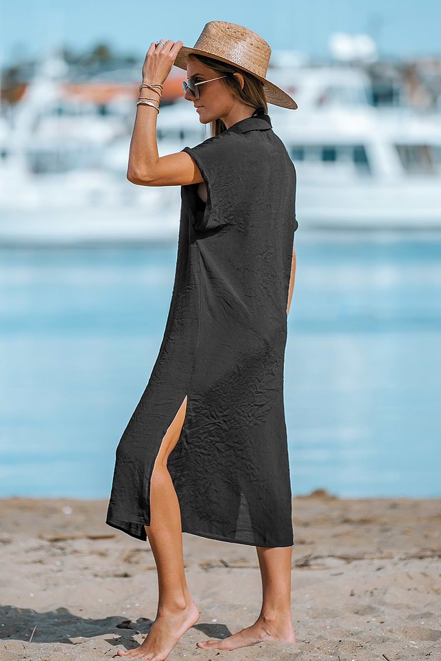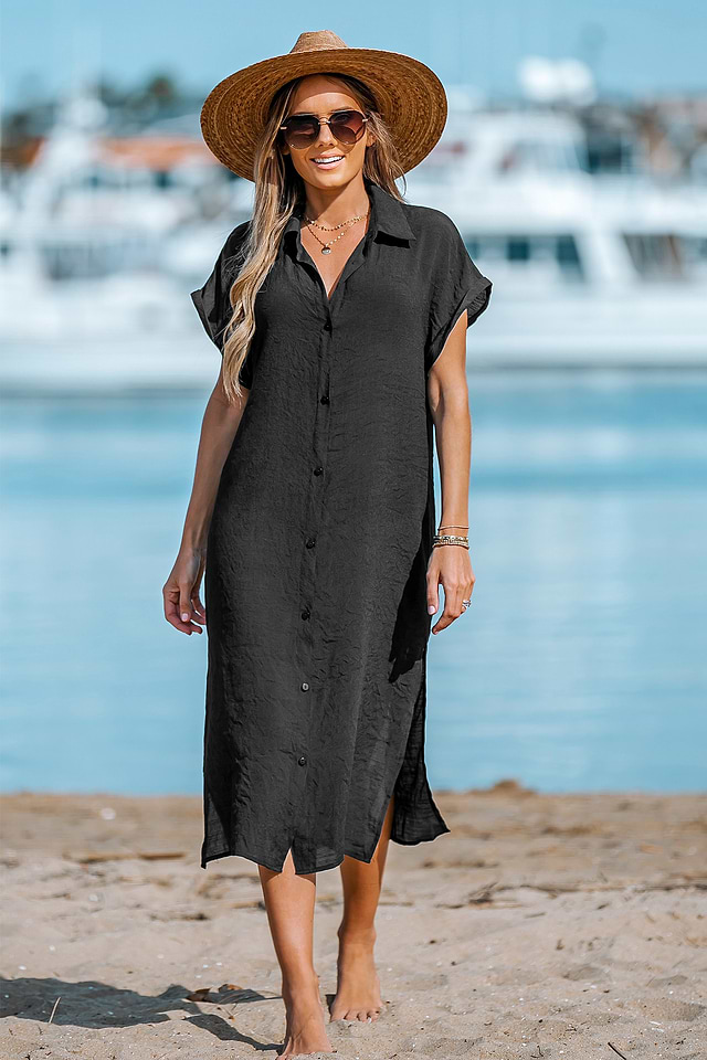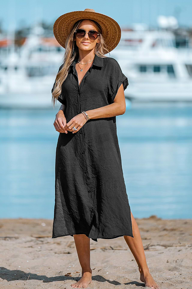 Ya sea para relajarte junto a la piscina o para ir a la playa, este vestido camisero abotonado te cubrirá de estilo y comodidad.