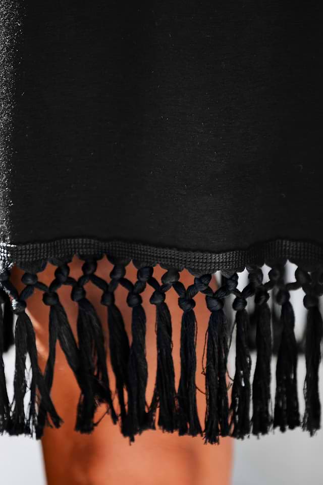 Luce un look impresionante junto a la playa con este vestido midi de punto con cuello redondo, tirantes, adornos de borlas y corte holgado.