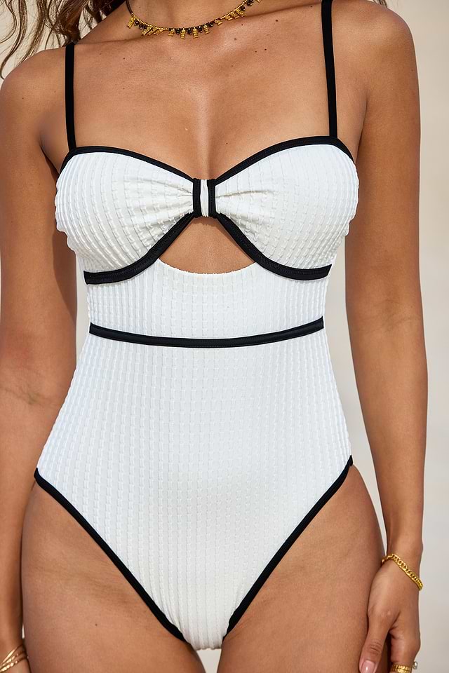 Presentamos nuestro bañador de una pieza Coastal Rib con nudo y ribetes recortados, una elegante incorporación a tu colección de ropa de playa. Con su intrincado ribete, detalles anudados y elegantes ribetes, este bañador irradia un encanto moderno y un estilo desenfadado.
