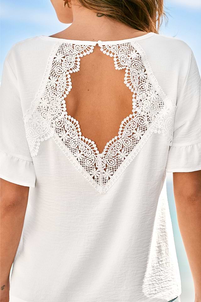 La blusa blanca Yes Please es esencial para tus vacaciones. Con cuello redondo, mangas cortas con volantes y un corte holgado, te mantendrá ligera y fresca.